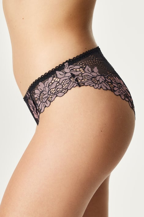 Der klassische Slip Daniella überflutet Sie förmlich mit üppiger Spitze mit plastischem Blumenmuster. Die vertikale Naht zaubert einen verführerisch runden Po.